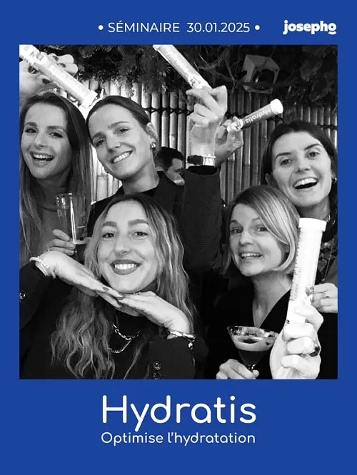 La société Hydratis, qui commercialise des pastilles d’hydratation (dont nous avons tous sûrement déjà entendu parlé !), organisait son tout premier séminaire à Paris avec leurs 40 commerciaux, venus des quatre coins de la France. L’occasion pour eux de se rencontrer, d'échanger sur la stratégie commerciale mais aussi de partager un moment convivial tous ensemble. Au programme : cocktail d’accueil, suivi d’un dîner assis et d’une soirée animée par un pianiste ! Hydratis voulait permettre aux participants de repartir avec leurs clichés et souvenirs de la soirée.